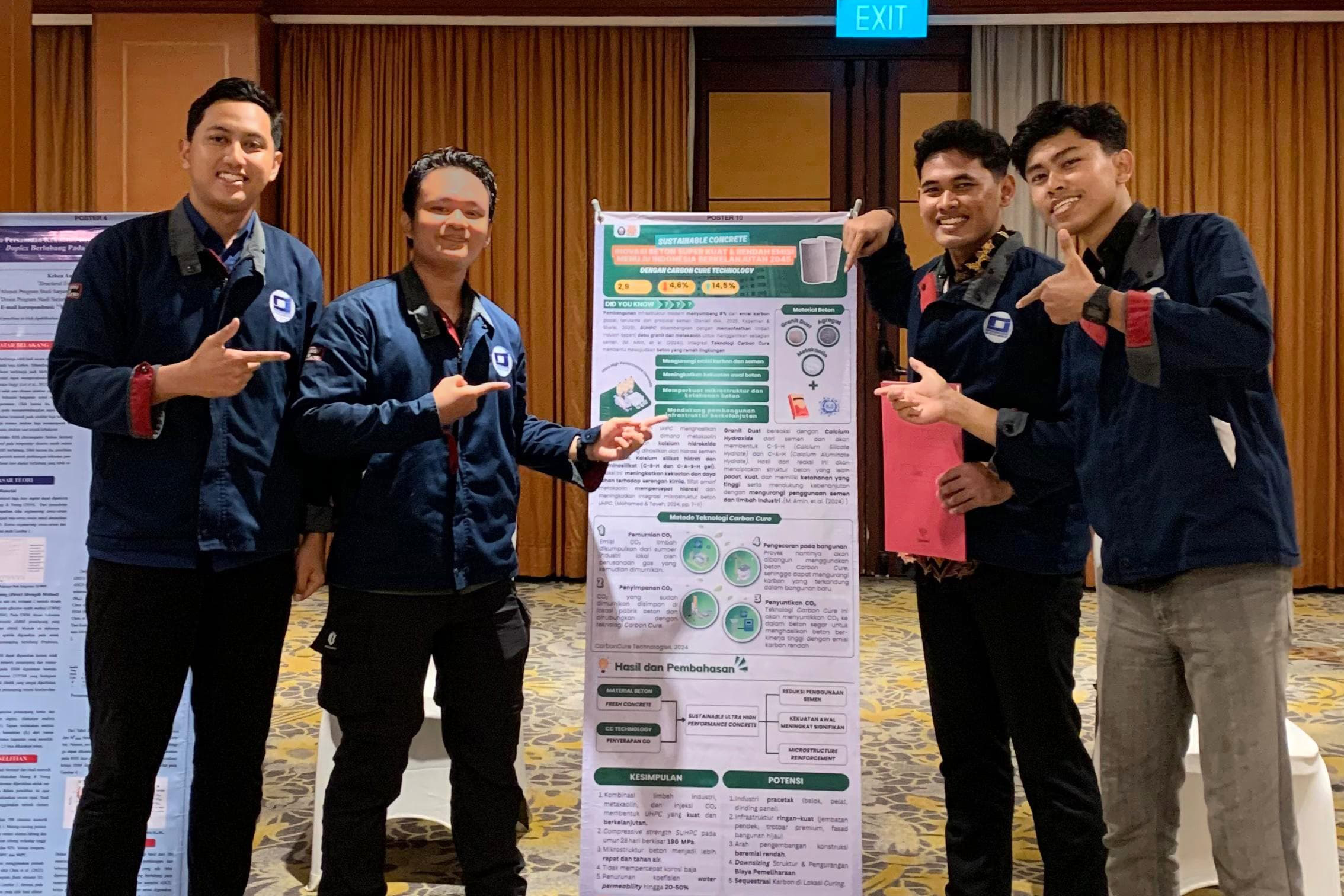 Poster yang mengantarkan tim ini meraih juara mengusung tema “Sustainable Concrete: Inovasi Beton Super Kuat & Rendah Emisi Menuju Indonesia Berkelanjutan 2045 dengan Carbon Cure Technology.”