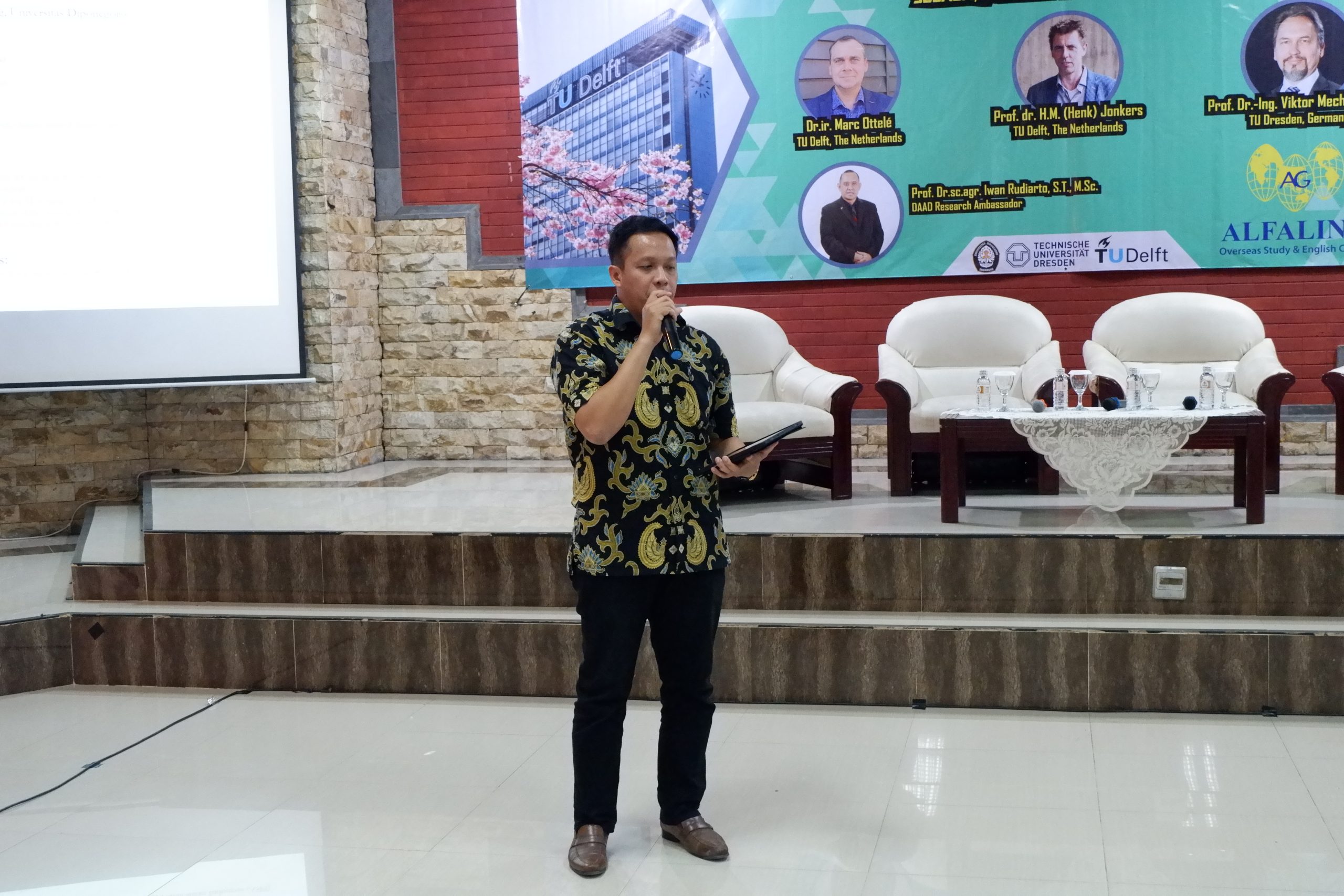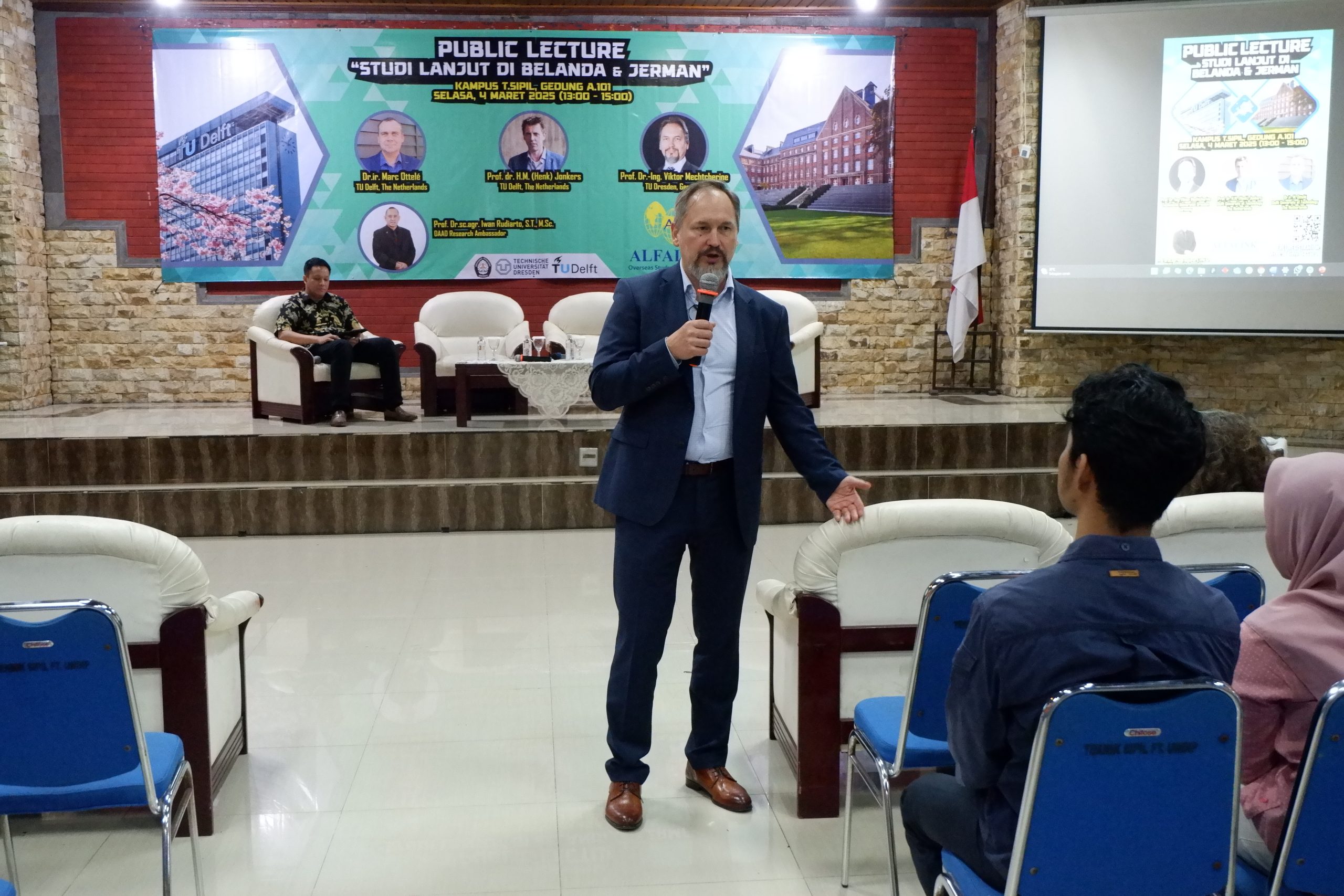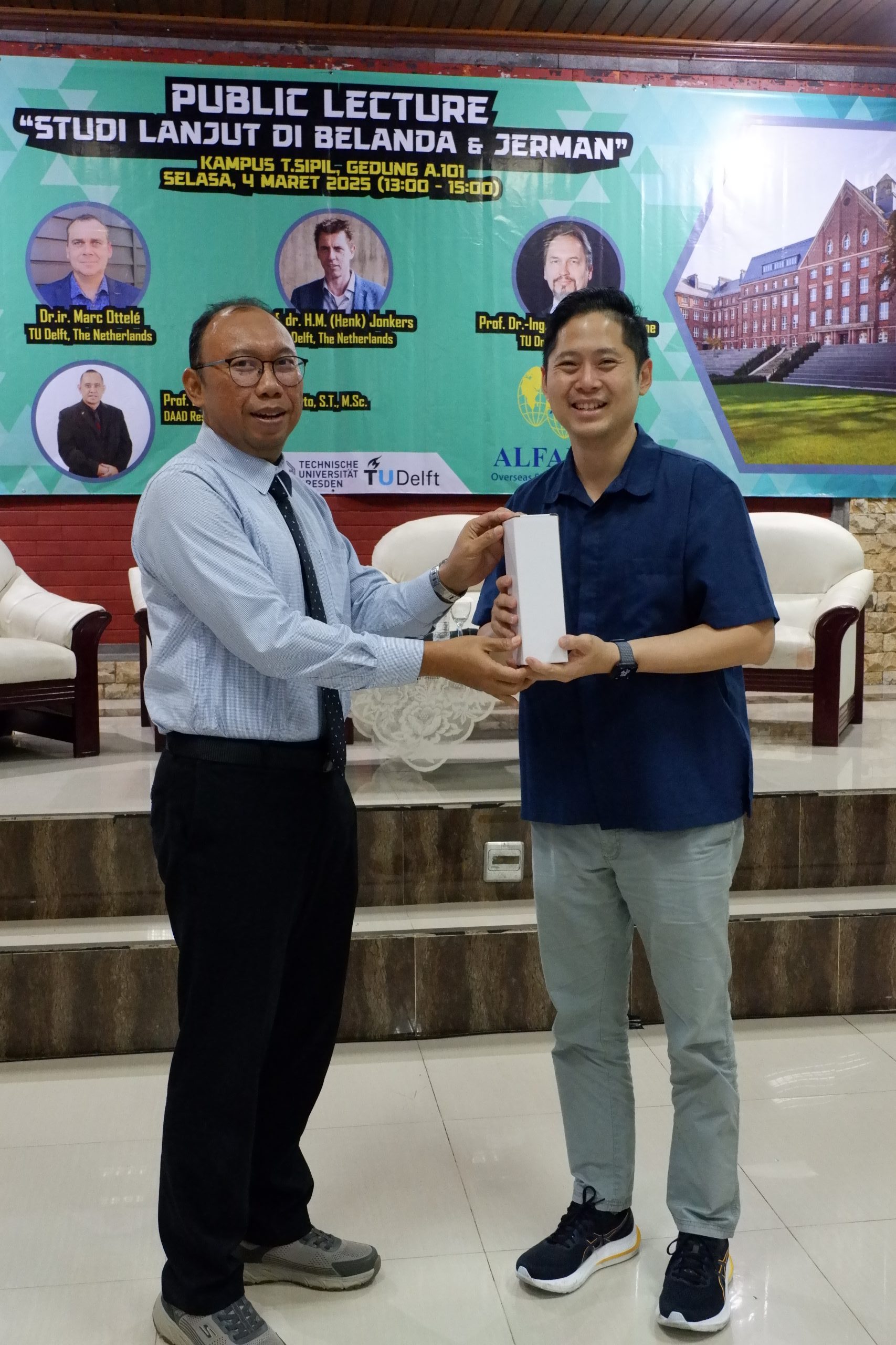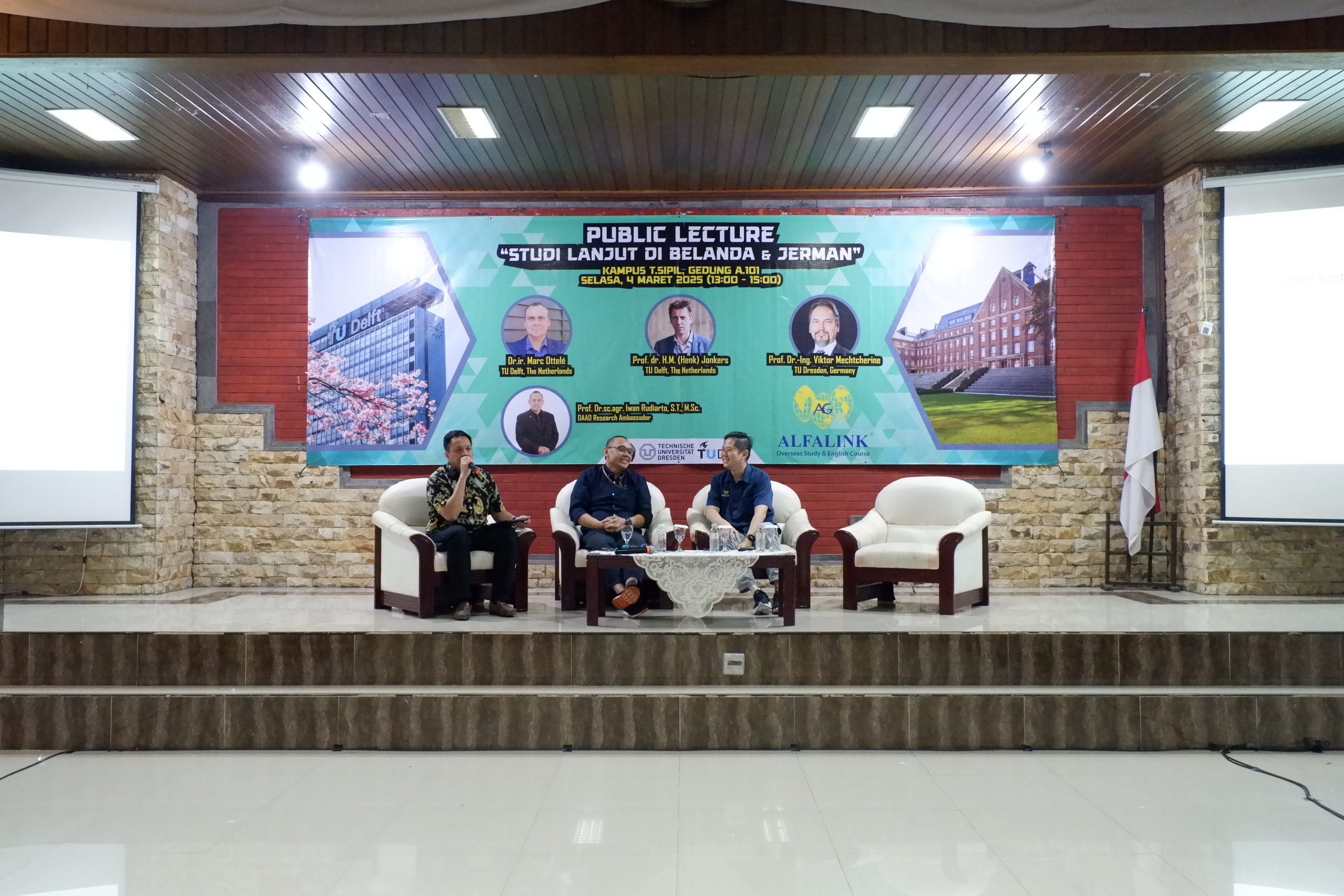 Kegiatan Public Lecture di buka oleh MC dan dilanjutkan oleh Moderator acara yaitu Riqi Radian Khasani, S.T., M.T., Ph.D. Acara ini terbagi menjadi dua sesi dimana pada sesi pertama yaitu paparan dari Prof. Dr.-Ing. Viktor Mechtcherine dan Prof. dr. H.M. (Henk) Jonkers mengenai program studi yang ditawarkan oleh TU Dresden, Germany dan juga TU Delft, The Netherlands. Sesi pertama diakhiri dengan tanya jawab antar mahasiswa maupun dosen yang berkeinginan untuk kembali menimba ilmu di Jerman maupun Belanda. Sesi kedua dimulai dengan paparan dari Prof. Dr.sc.agr. Iwan Rudiarto, S.T., M.Sc berjudul “Study and Research in Germany ‘Master & Ph.D’” dan dilanjut dengan paparan dari Alfalink Overseas Study & English Course dengan judul “Study in Netherlands”. Sesi kedua ini berbicara mengenai kesempatan-kesempatan dan prosedur dalam mengambil studi di Jerman maupun Belanda serta kemungkinan-kemungkinan beasiswa yang dapat diusahakan oleh para calon mahasiswa studi di Jerman dan Belanda. Sesi kedua diakhiri dengan tanya jawab serta pemberian cenderamata kepada narasumber dan foto bersama sekaligus menjadi penutup dari rangkaian kegiatan World Class University pada hari Selasa tanggal 04 Maret 2025.
