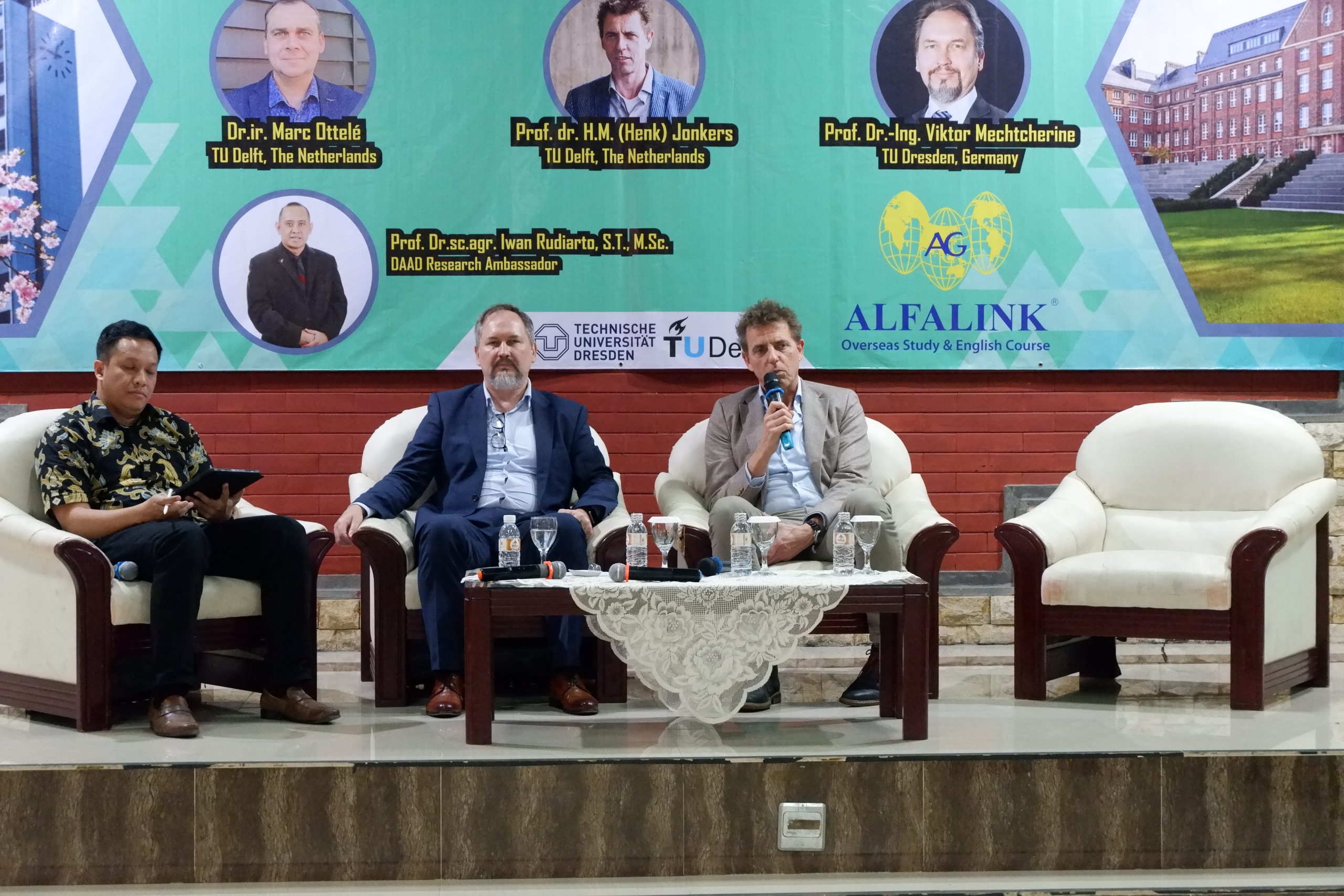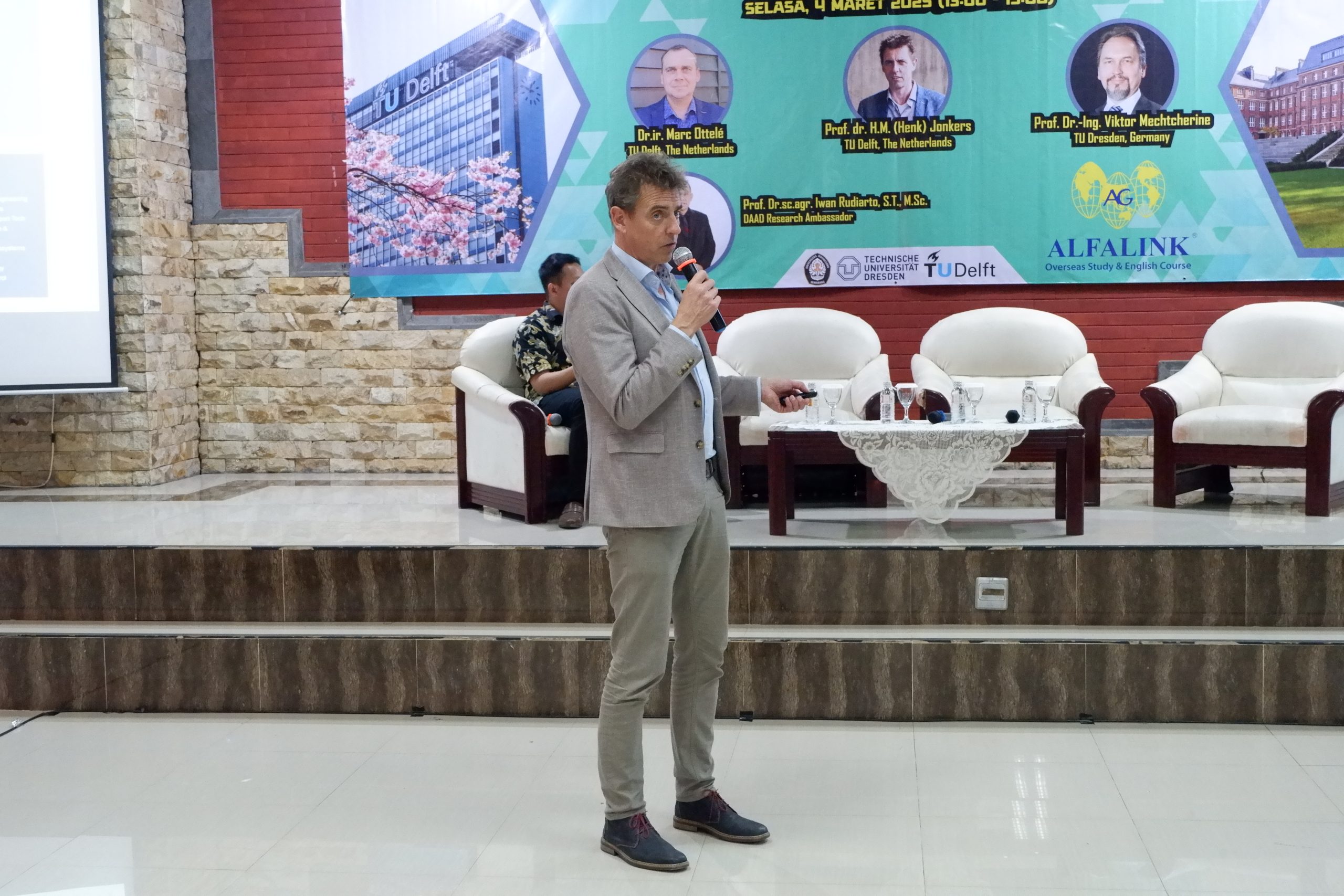 Selasa (04/03/2025) – Telah berlangsung pula kegiatan Public Lecture dengan judul kegiatan “Studi Lanjut di Belanda & Jerman” di Kampus Teknik Sipil, Gedung A.101. kegiatan Public Lecture ini merupakan suatu rangkaian dari program World Class University Universitas Diponegoro dengan menghadirkan Prof. Dr.-Ing. Viktor Mechtcherine dari TU Dresden, Germany; Prof. dr. H.M. (Henk) Jonkers dan Dr.ir. M. Ottelé dari TU Delft, The Netherlands; Prof. Dr.sc.agr. Iwan Rudiarto, S.T., M.Sc selaku DAAD Research Ambassador; dan Alfalink Overseas Study & English Course sebagai narasumber.